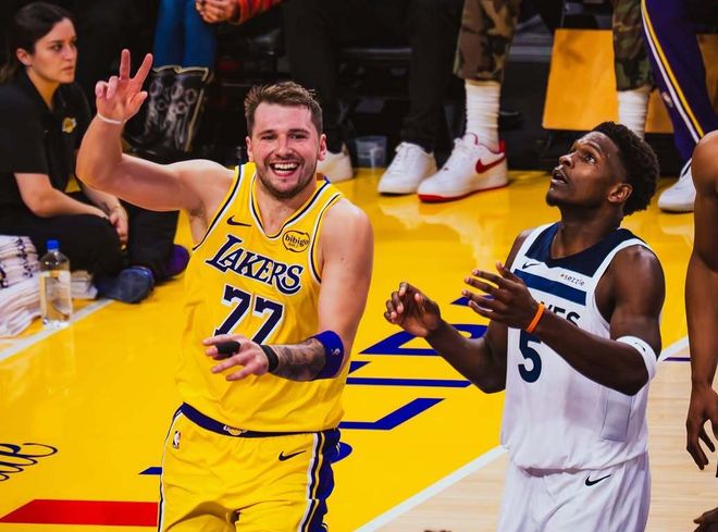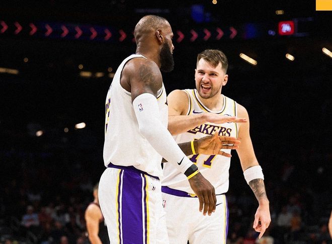 简单来说,湖人和勇士其实SRS值差不多,甚至勇士还强点,只不过湖人进攻好,勇士防守好(库里不在的情况下)。回到湖人这里,本赛季詹姆斯复出后,场均17.6分5.7篮板7.2助攻,产量下滑比较大,但出战的比赛7胜2负,比如赢太阳依靠罚球,击败76人最后时刻天神下凡,击败猛龙时给八村塁的精准助攻,詹姆斯是能在关键时刻,做到统治比赛的。此外詹姆斯带着海斯+拉拉维亚+里夫斯+文森特这套替补阵容,百回合能赢对手24.5分。但湖人问题的关键点,则是东契奇。本赛季场均34.7分(联盟第一)8.7篮板8.8助攻,空有数据的刷子。